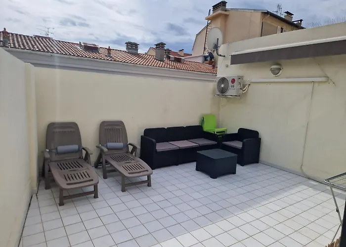 Das 1-Zimmer-Plein Centre Appartement Climatise Et Spacieux Avec Grande Terrasse Sur Le Toit A Nice befindet sich im Zentrum von Nizza und hat eine Gesamtfläche von 25 m². Das Apartment bietet WLAN im ganzen Gebäude.