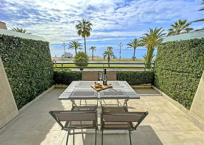 Das 83 m² große Gorgeous Oceanfront Apartment Promenade Nizza befindet sich im Stadtviertel Promenade des Anglais von Nizza, in 25 Gehminuten Entfernung vom Museum Masséna. Das Apartment verfügt über eine Terrasse, von dem aus die Gäste einen Küsten- Blick aufs Meer genießen können.