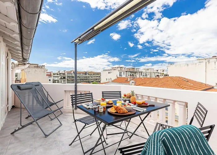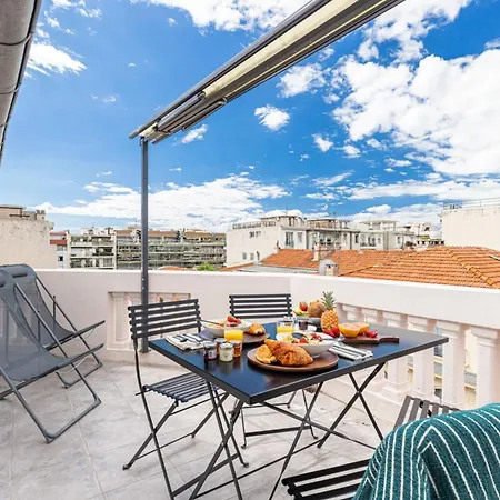 Die 2-Zimmer-Ferienwohnung Spitalieri 2 - Superb Terrace Panoramic View Ac Nizza liegt im Zentrum von Nizza sowie ist in ungefähr 5 Gehminuten Entfernung von der Avenue Jean-Médecin.
