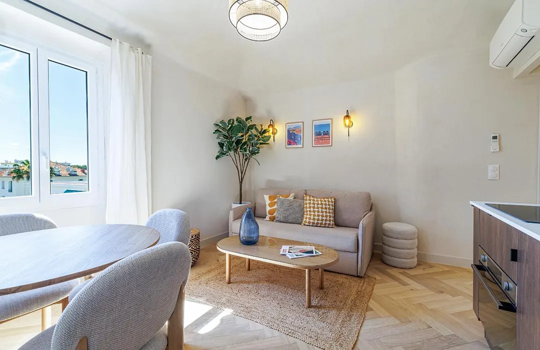 Among the self-catering amenities provided is a fully furnished kitchen with an oven. Nice Cote d'Azur airport is located 5 km away, while Barla / Riquier bus station is within easy reach of 62 Carnot Lot 6 - Appartement Renove - Climatise - 2 Chambres Suites. Guests are invited to relax on a terrace.