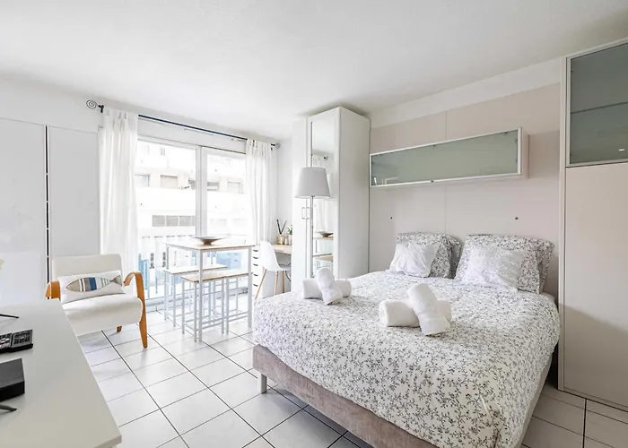 The 28 m² Charming Studio With Pool & Balcony -Heart Of Nice is situated in the Les Baumettes district of Nice, nearly a 25-minute walk from the Musée Masséna, and overlooks the city.