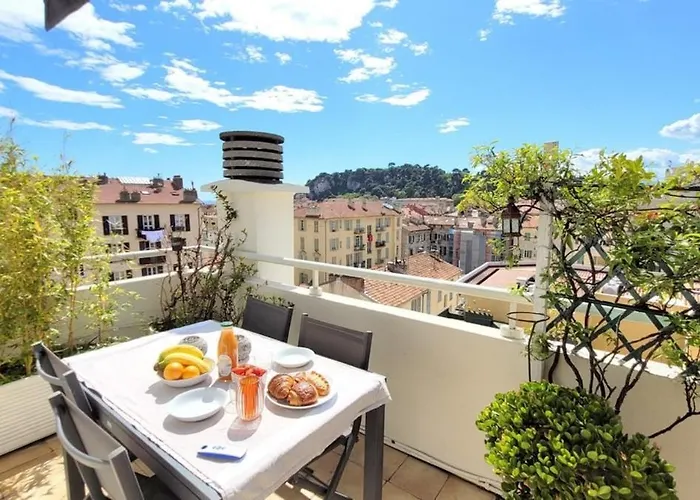 The 60 m² Cosy Penthouse Le Port 2 Bedroom - 2 Bath apartment features views of the city and is situated within a 5-minute drive of Galeries Lafayette Department Store. Staying in the property, nestled within walking distance of Human Palaeontology Terra Amata Museum, guests can relax on a terrace.