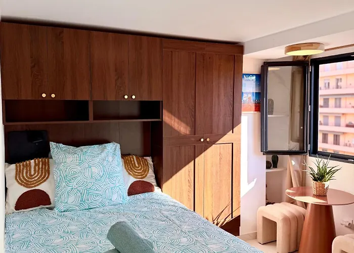 The 12 m² Place Massena - Small Peaceful Haven Nice apartment offers proximity to a number of tourist attractions, such as the famous Promenade des Anglais Street, located approximately 25 minutes' walk away.