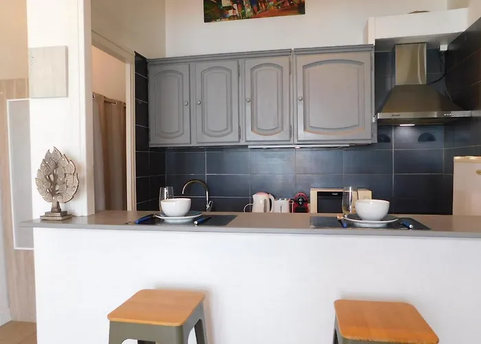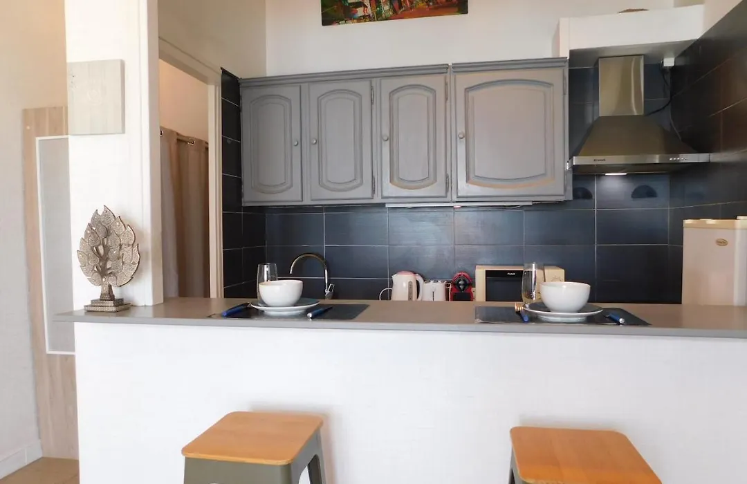 A fully furnished kitchen is fitted with a microwave, an electric kettle, and a refrigerator. Guests can enjoy French cuisine in Le Bambou Plage located about 5 minutes' walk away. Splendid "Savoy Palace" Studio With Sea View And Air Conditioning is at a distance of 200 metres from Lenval / Promenade bus stop.
