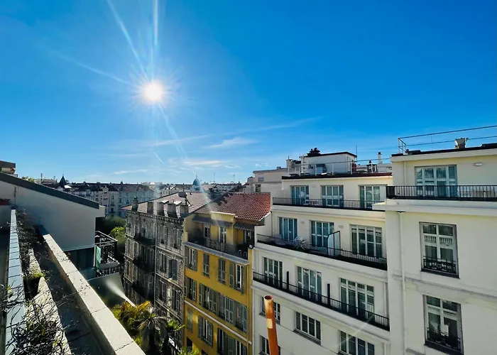Terrasse Ensoleillee Sur Les Toits De Nice apartment offers self-catering amenities, such as an equipped kitchenette, and an outdoor dining area for guests' convenience. The nearest airport is Nice Cote d'Azur, 5 km from Terrasse Ensoleillee Sur Les Toits De Nice apartment, and Mozart bus station is nearly a 5-minute walk away.