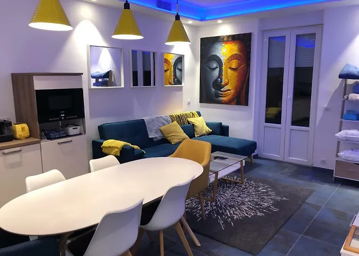 Este establecimiento frente a la playa ofrece una cocina completa equipada con horno de microondas, hervidor eléctrico y nevera y servicio de tetera/cafetera. El aeropuerto Internacional de Niza-Costa Azul está a 10 minutos en coche, y la parada de autobús Magnan, a 5 minutos a pie de California Apartamento. Los huéspedes podrán disfrutar de lujosos servicios, como terraza y patio.