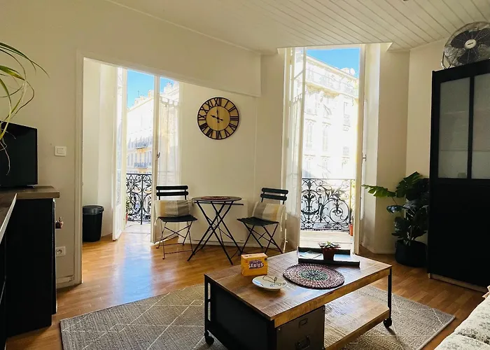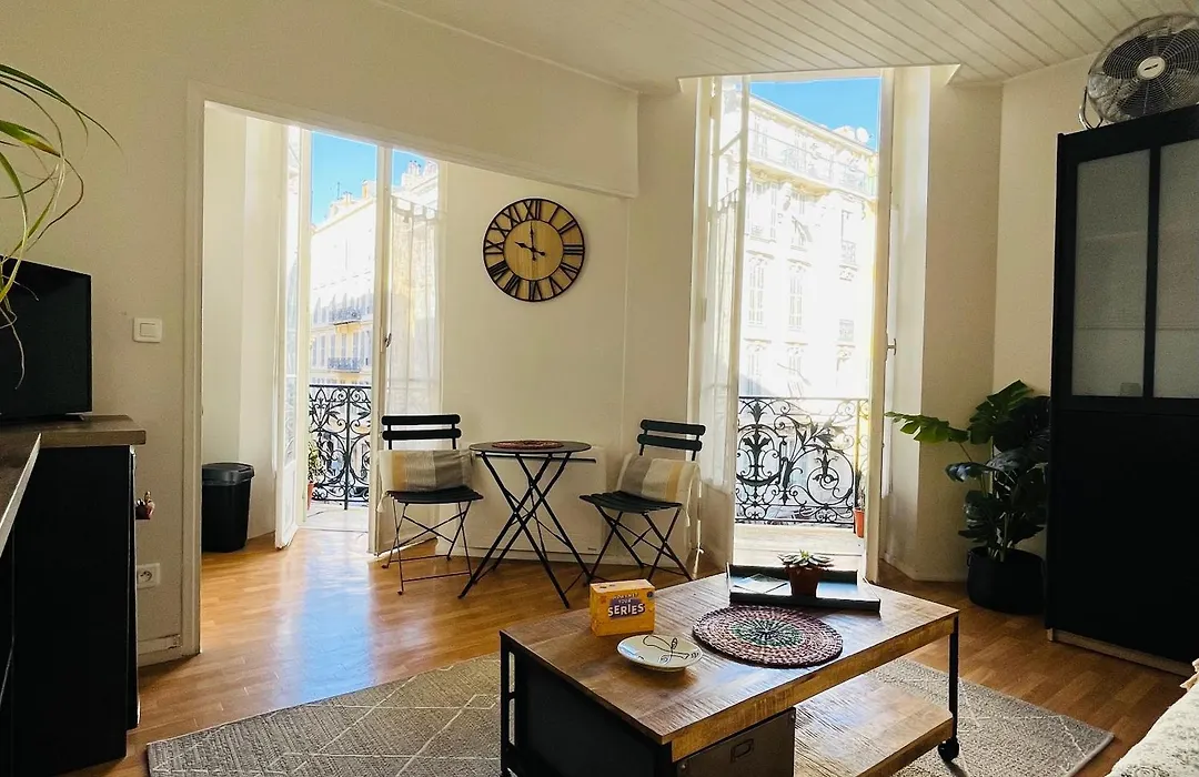 Appartement Charmant Studio En Plein Coeur De Nice est situé à environ 5 à pied des Galeries Lafayette Haussmann et à 10 km de l'aéroport de Nice-Côte d'Azur. En séjournant dans le domicile de 23 m², niché à courte distance à pied de la Place Masséna, les clients peuvent se détendre sur une terrasse.