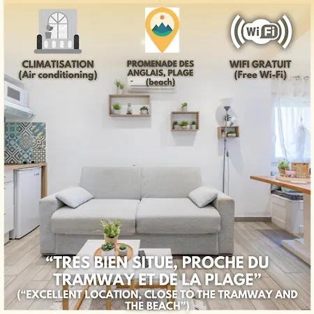 Doté d'une kitchenette faisant partie de ses équipements indépendants, l'appartement offre également à ses clients un coin repas pour prendre leurs repas. L'aéroport le plus proche est celui de Nice-Côte d'Azur, à 5 km de l'endroit.