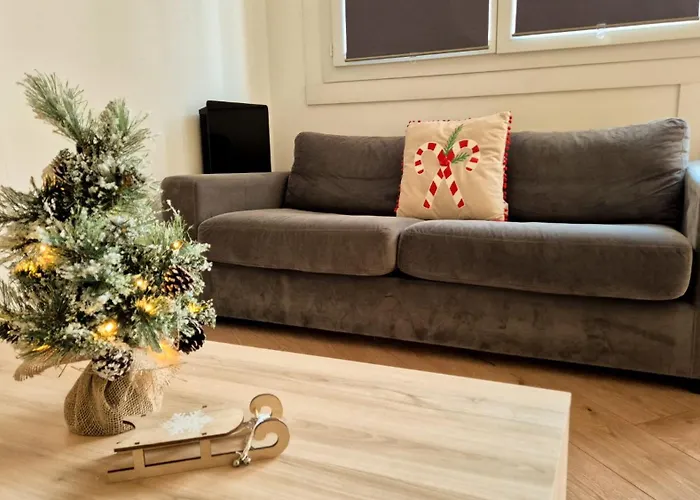 L'appartement propose des équipements indépendants, tels qu'une cuisine complète et un coin repas extérieur pour le confort des clients. L'arrêt de bus Arenas est à 5 minutes de marche.