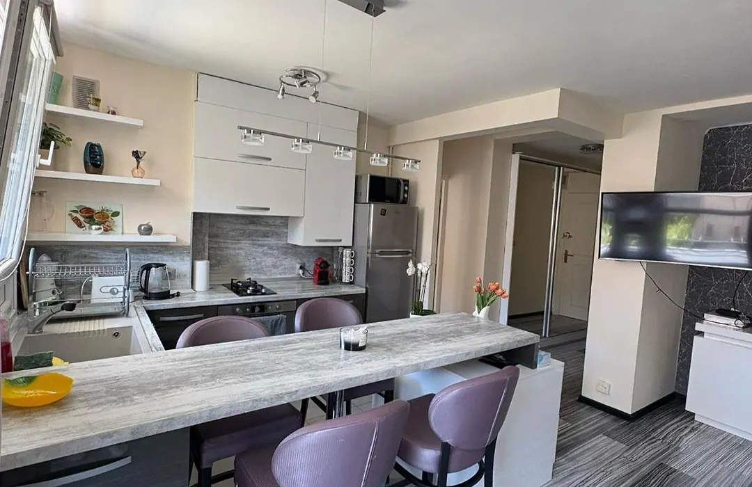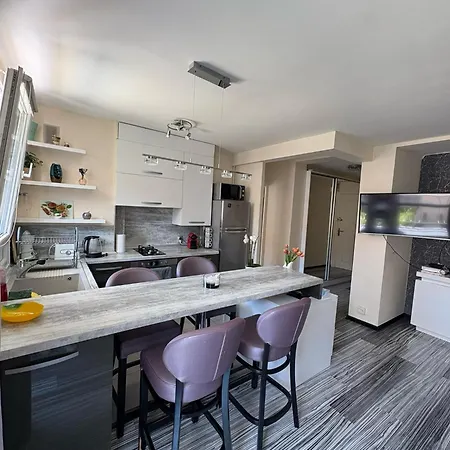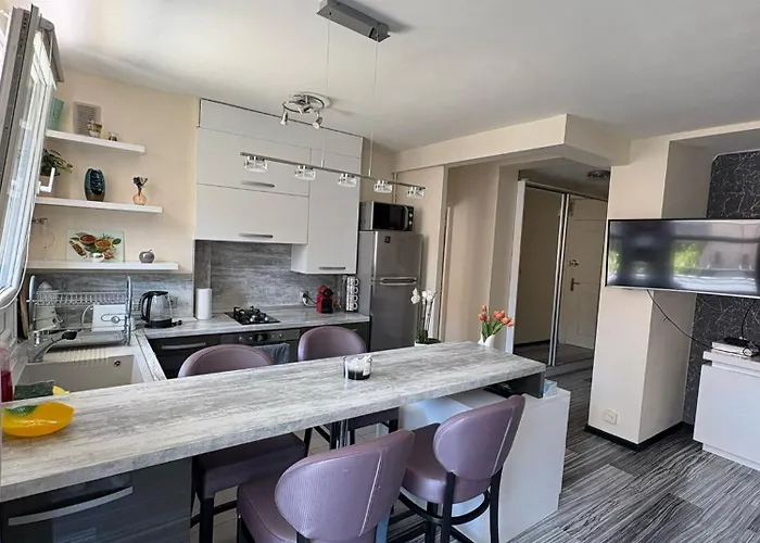 Elegant Apartment Terrace Port Of Niceは設備の整った台所が備わっており、そこで自炊することができます。 最寄りのバス停Terra Amataはアパートすぐ近くです。