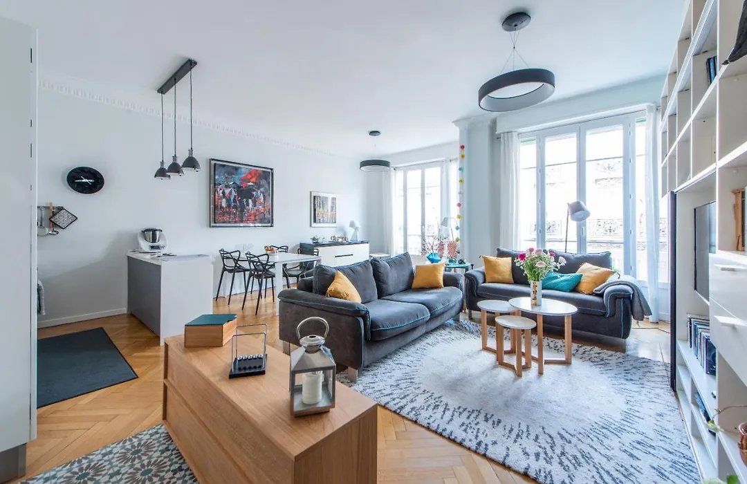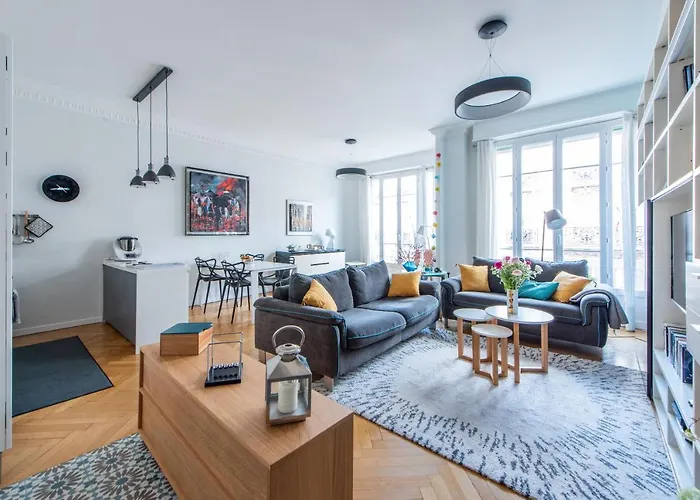 92m²のHappy Few Le Joffreアパートメントアパートはベッドルームの2室があり、顧客の4人を収容できます。 この施設はコンシェルジュサービスとアイロン掛けサービスを提供しています。