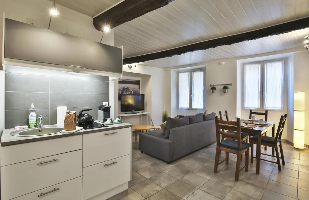 Jolie 2 Pieces Quartier Bonaparte/ Climアパートには、調理して自家製の食事を楽しむことができる設備の整った台所が備わっています。 コート・ダジュール空港までは車で20分以内で行けます。