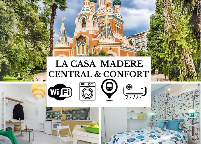 プロムナード デ アングレは寝室1室のCasa Madere- Ideal Couples - Central & Cosy -Train Station - Tram & Supermarkets-Balcony- Washing-Machine-Ac ニースアパートからから歩いて25分で、Gare du Sudは近くにあります。 この21m²のアパートに庭園の景色を望むテラスがあります。