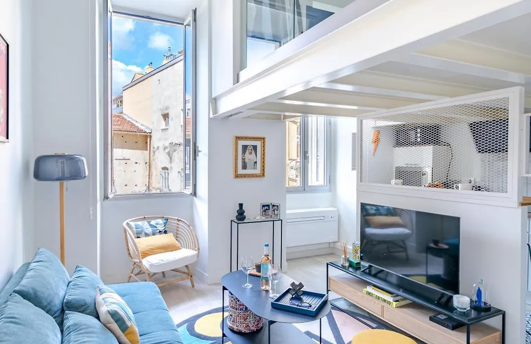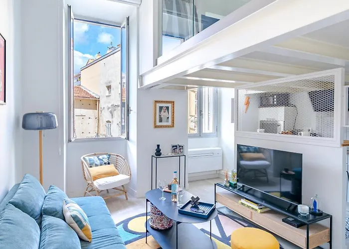 ベッドルーム1室のLoft Hyper-Centre De ニースアパートは、ニース鉄道駅から1.1キロメートル離れた所で、アルベール1世公園から徒歩で5分くらいの場所にあります。