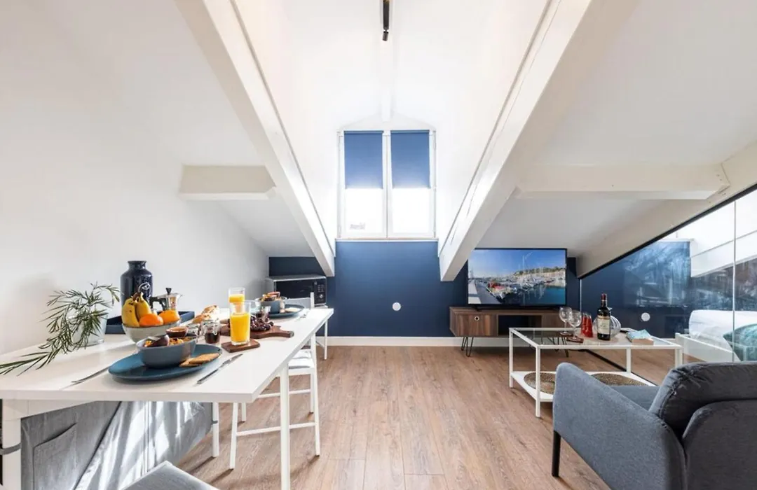 ベッドルーム1室のMy Casa - Deroulede - Superb Studio Suite W Ac Downtown ニースから徒歩で5分離れたギャラリー・ラファイエットなどの市内のさまざまな観光スポットに行きやすいです。