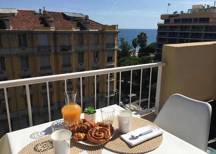 Eglise Sainte-Helene de Nice数歩の距離に位置するベッドルーム1室のStudio 100M De La Mer ニースからは、近くの数多くの観光スポットへ行きやすいです。 海辺の22m²のアパートは海辺の景色を楽しめるテラスが備わっています。