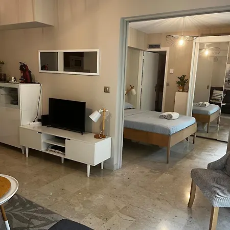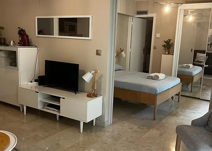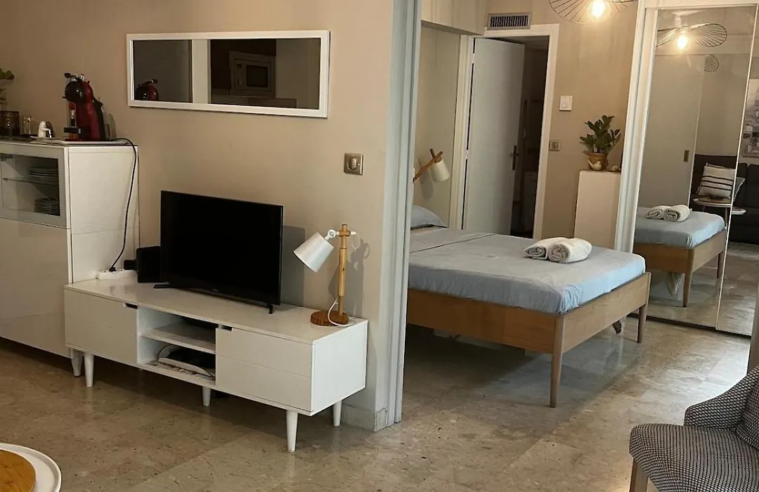 Superbe 2 Pieces Bord De Mer ニースアパートはマセナ広場とヴェルデュール劇場から 700メートルに位置し、庭園の景色を望めます。