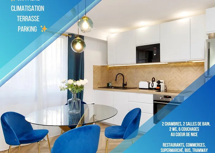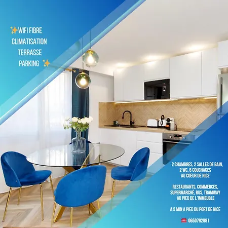 広々とした64m²のBel Appartement Port De Nice Avec Terrasse, ParkingはPort Lympiaから歩いて5分に位置し、ビジネスにもレジャーにもWiFiを利用することができます。 Eglise Notre-Dame du Portから300メートルで、寝室2室のアパートは旧市街少し離れたです。