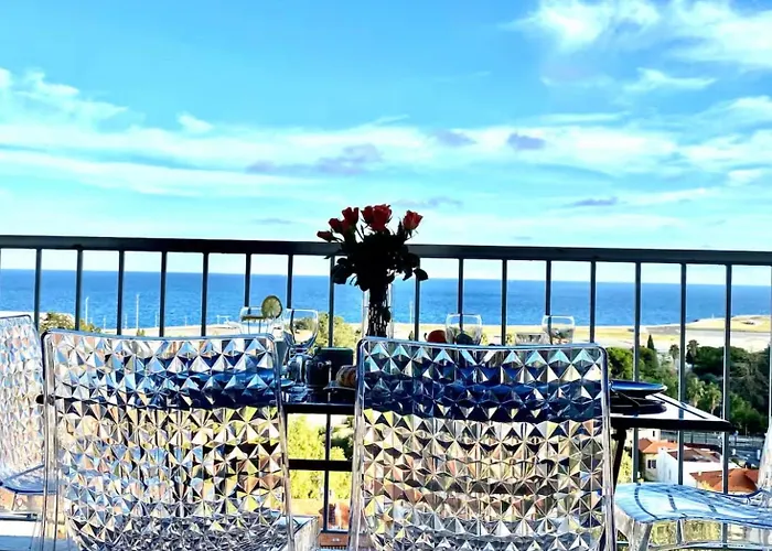 広々としたVue Mer Panoramique - Terrasse - Climatisation - 2 Bedrooms - Wifi - Cuisine - Tramway ニースアパートはビーチに位置し、シャルル・エルマン・スタジアムから徒歩で25分で、国際素朴派芸術美術館から2kmの距離です。 アパートには海の景色に面したテラスがあります。
