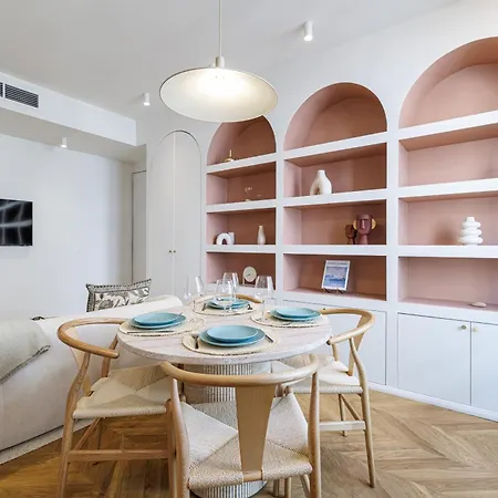 Een ingerichte kitchenette in 1-slaapkamer Maison Galbani Architect-Designed Apartment is voorzien van een oven en een vaatwasser. De Terra Amata bushalte is op 100 meter afstand.