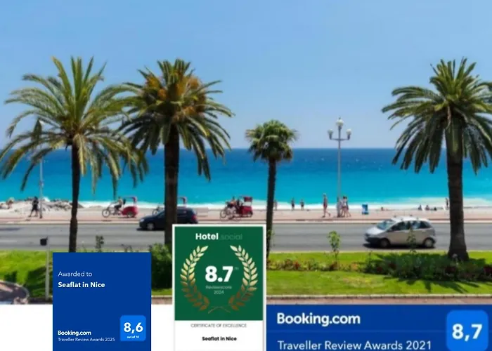 Het appartement heeft een ligging aan het strand op 4 km van Gare de Nice-Ville treinstation. Het Musée de la Photographie Charles Nègre bevindt zich binnen 10 minuten rjden van 1-slaapkamer Seaflat In Nice appartementen, terwijl Carras / Promenade busstation vlak om de hoek van het pand ligt. De Colline du Château is op 4,1 km van het 1-badkamer appartement gelegen.