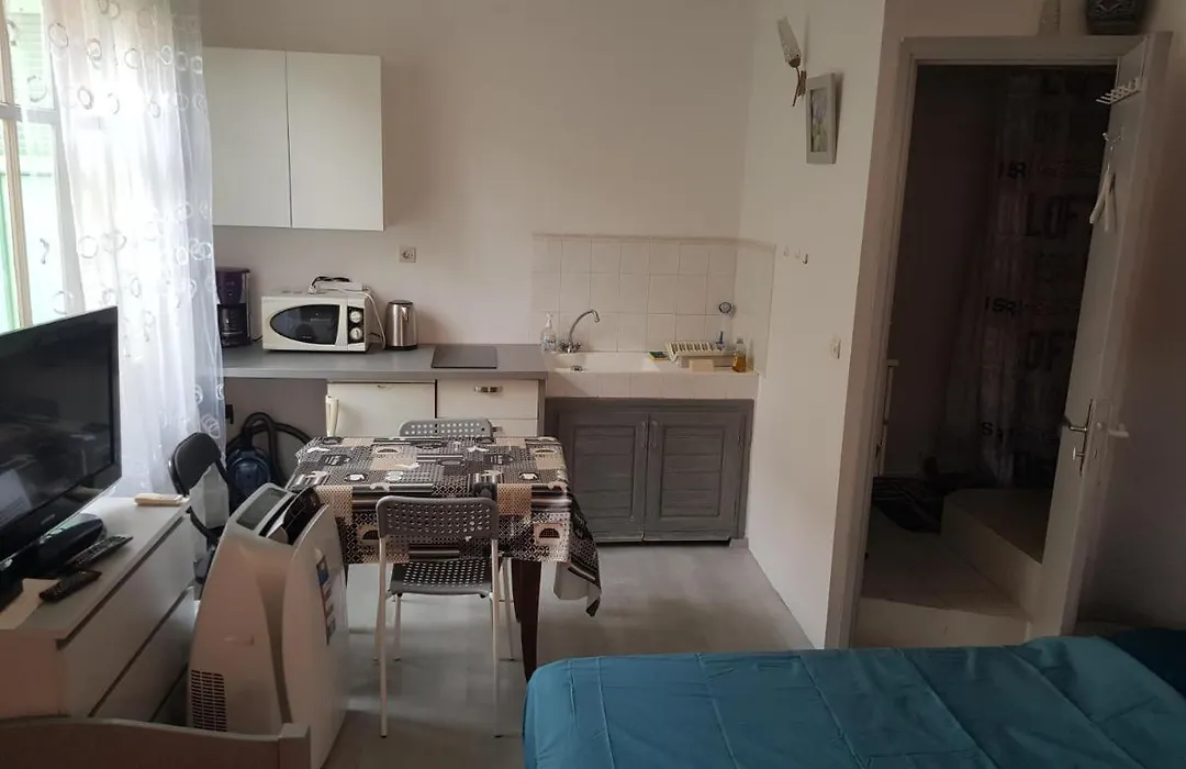 Studio Pour 3 Personnes Au Calme Dans Villa is voorzien van zelfvoorzienende faciliteiten, waaronder een keuken met een waterkoker, een koelkast en keukengerei. Het appartement is gesitueerd op een korte afstand van Gare de Nice-Ville treinstation.