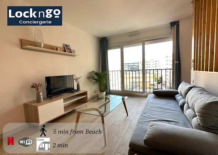 Het appartement ligt in de wijk Arenas van Nice en bevindt zich tevens binnen 6 km van de Place Masséna en binnen 2 km van Stade Charles-Ehrmann. Gasten kunnen gemakkelijk het Parc Phoenix vinden, dat op een korte afstand van dit appartement ligt. Superbe Appartement Neuf - 5Min Beach Walk bevindt zich op ongeveer 15-minuten rijafstand van de Colline du Château.