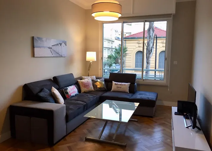 Den strandnära 54 m² stora lägenheten ligger inom 2 km från Marc Chagall-museet och inom 2,1 km från La Tête Carrée. Gästerna kan enkelt ta sig till Promenade des Anglais, som ligger mindre än 10 minuter bort till fots. Du kan också nå Vieux-Nice, som ligger inom 2,2 km från den här strandnära lägenheten.