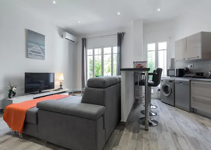 Dolce Vita lägenhet ligger i Nices Les Baumettes distrikt och har en terrass. Boendet erbjuder rum med balkong, soffa och te-/kaffebryggare samt en separat toalett och en dusch i badrummet.