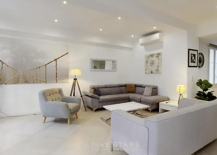 Grand Suite Promenade Five Stars Holiday House lägenhet är belägen i Nices Promenade des Anglais (engelska promenaden) distrikt, ca 10 km från Nice Cote d'Azur flygplatsen. Ett komplett kök med mikrovågsugn, vattenkokare och kylskåp finns också på boendet.