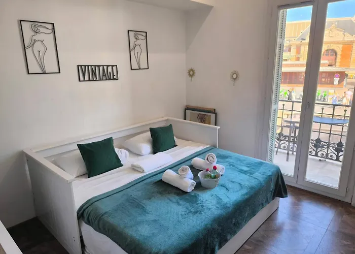 Joli Studio Fonctionnel Climatise lägenhet omfattar luftkonditionerade rum som har kokvrå, balkong och luftkonditionering. Boendet ligger 5 minuters promenad från järnvägsstationen Gare de Nice-Ville och 10 minuters promenad från Operahuset i Nice.