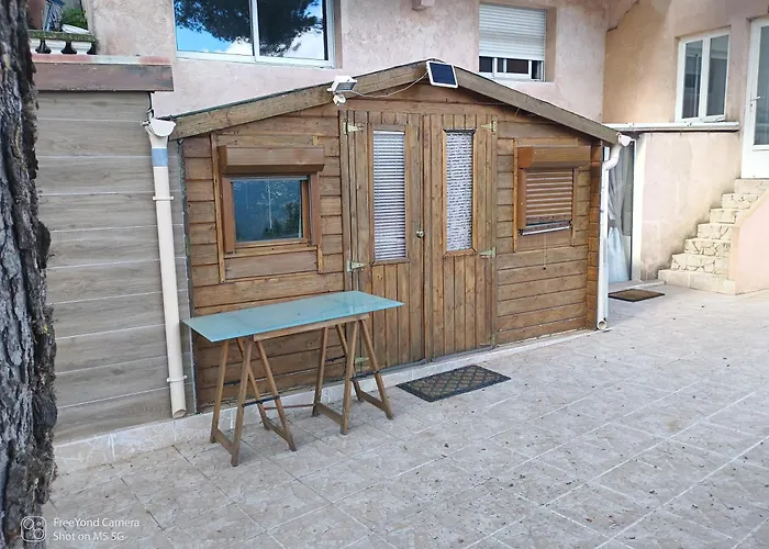 Chalet At Villa Don Quijote Nice med 1 sovrum, som ligger cirka 5 minuter till fots från Parc Forestier Departemental de la Grande Corniche, har en terrass med utsikt över bergen.